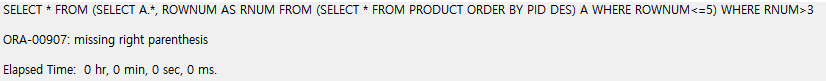 ORA-00907 : missing right parenthesis