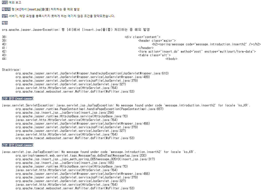 javax.servlet.jsp.JspTagException: No message found under code 'message.sign.h2' for locale 'ko_KR'.