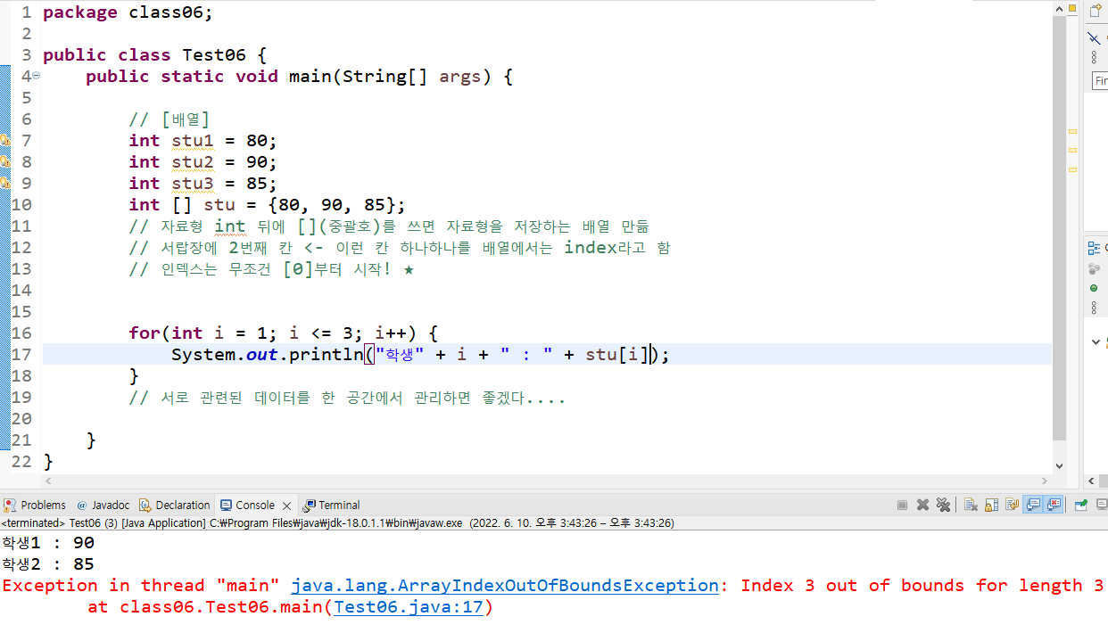 java.lang.ArrayIndexOutOfBoundsException : Index 3 out of bounds for length 3