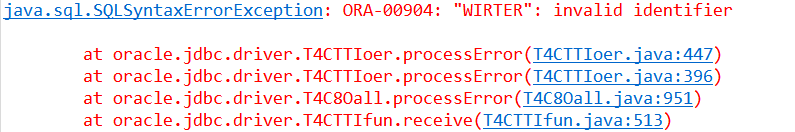 SQLSyntaxErrorException : ORA-00904: "WIRTER" : invalid identifier