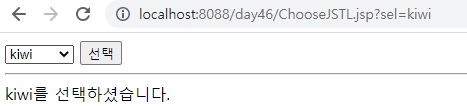 <c:when test="${param.sel=='apple'}"> <!-- sel => request, session 파라미터값 => param.sel -->
