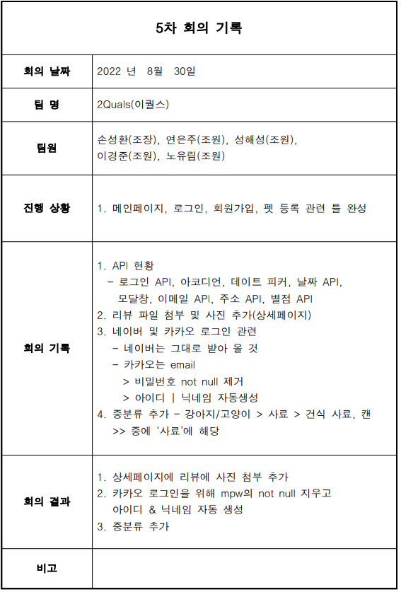 [팀 프로젝트] - 펫 상점(펫키지) 5일차 회의기록 및 완성본 본문