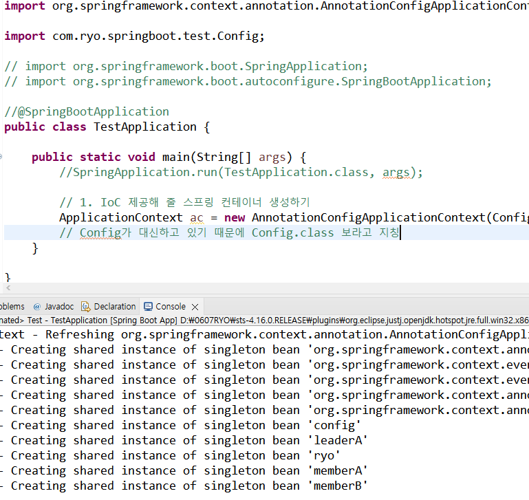 // 1. IoC 제공해 줄 스프링 컨테이너 생성하기