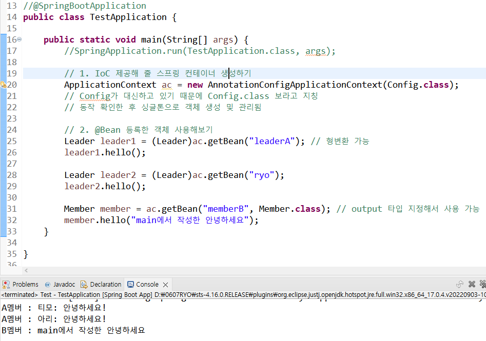 Leader leader2 = (Leader)ac.getBean("ryo");