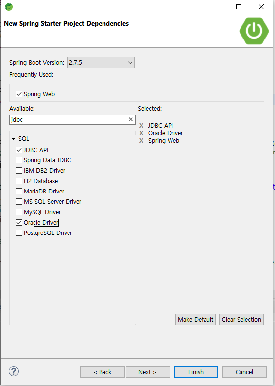 > Oracle Driver는 현재 선택 하지 않음(오류 발생)