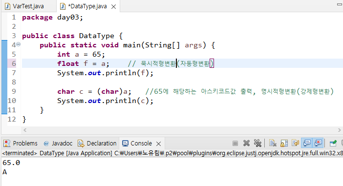 : 변수나 상수의 데이터 타입을 다른 타입으로 변환하는 것