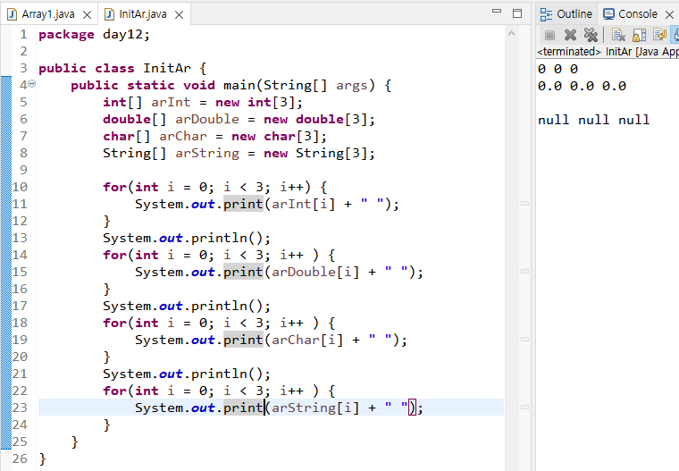 : 배열 생성시 배열의 값은 배열의 타입에 해당하는 기본값으로 초기화!