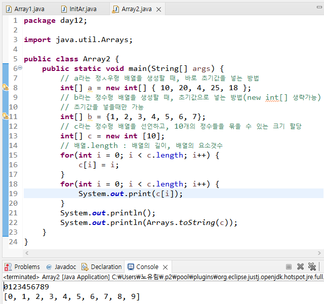 3) 배열의 초기화와 출력