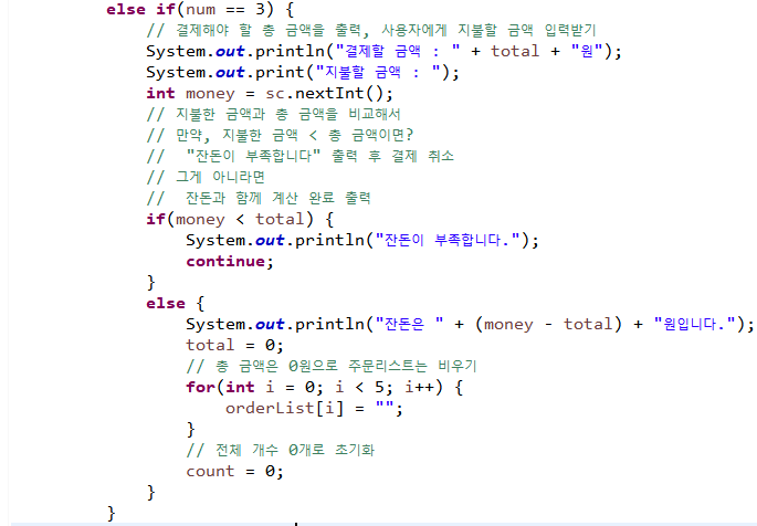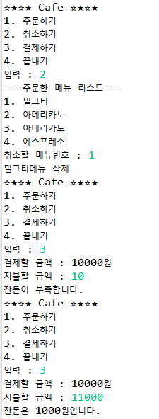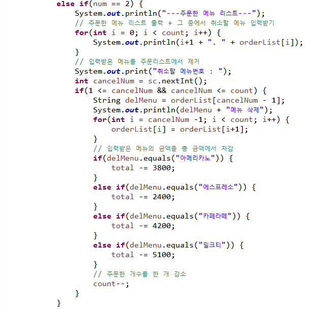 3. 입력받는 메뉴를 주문리스트에서 제거