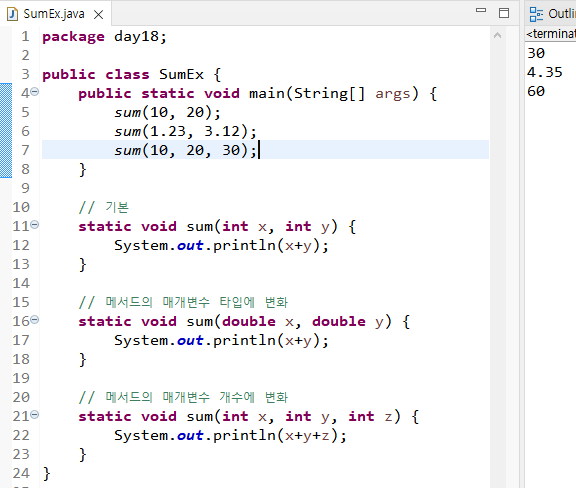 - 하지만, 같은 기능을 갖고 있는 메서드라면, 매번 이름 정의하는 것이 불필요