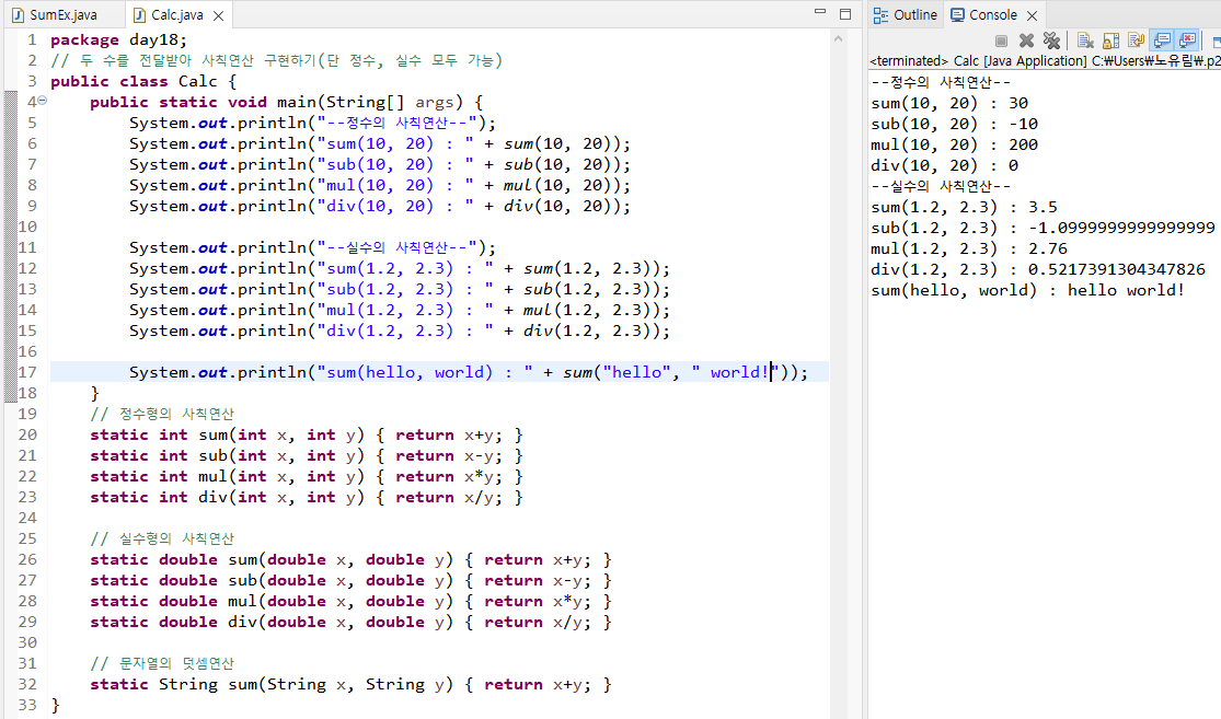 2. 실수형 값을 두 개 전달받아 두 수의 합을 출력하는 메서드 구현