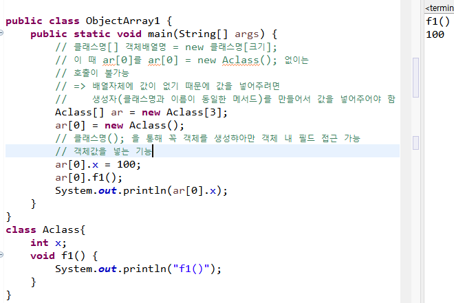 클래스명[ ] 객체배열명 = new 클래스명[크기];
