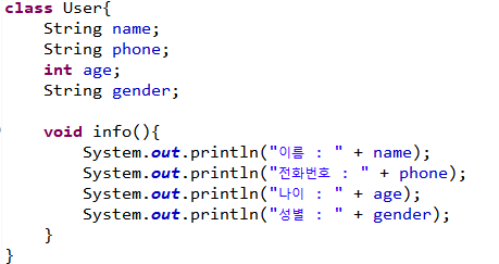 변수 혹은 메서드 } // 클래스 안에 클래스가 올 수도 있음