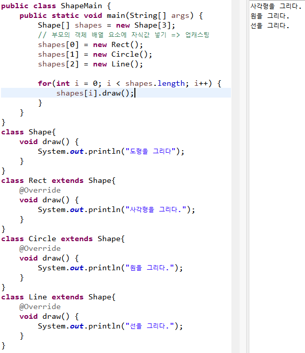 각 클래스에 맞게 draw() 오버라이딩 하기