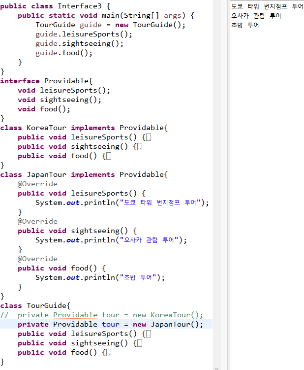 JapanTour 클래스로 변경이 되어야 한다면?