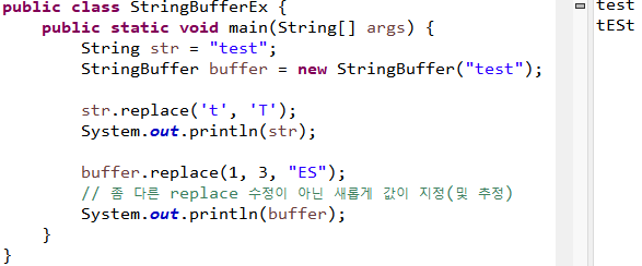 String 클래스는 immutable(변하지 않는)객체이기 때문에