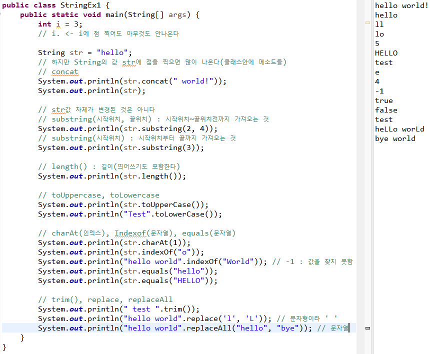 | replaceAll(변환할 문자열, 변환될 문자열) | 문자열 내의 특정부분을 다른 문자열로 변경 |