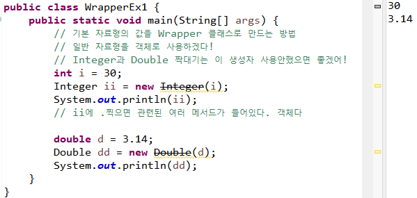 Wrapper클래스명 객체명 = new Wrapper클래스명(값);