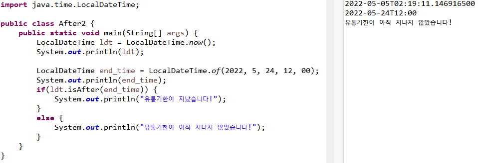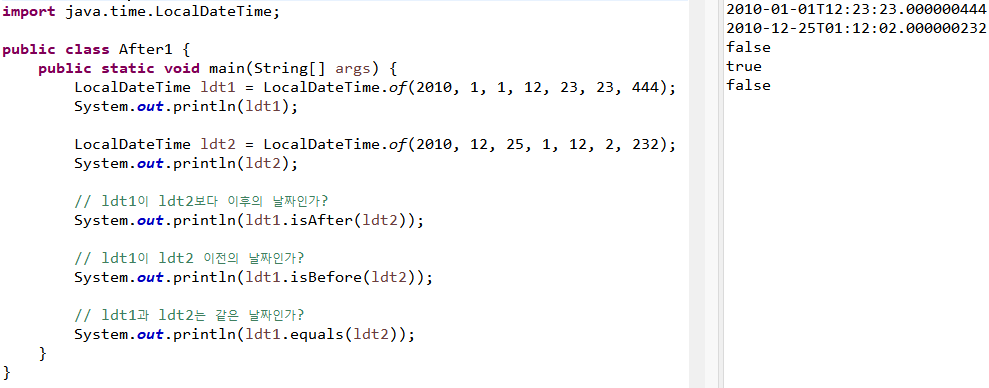 time 패키지에서는 각 필드 값을 비교하는 메서드 사용