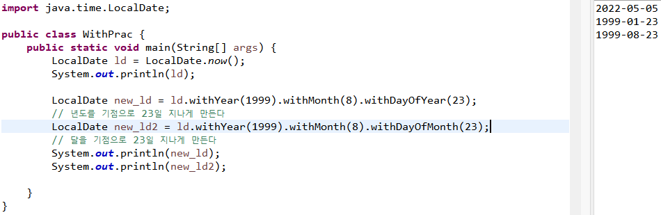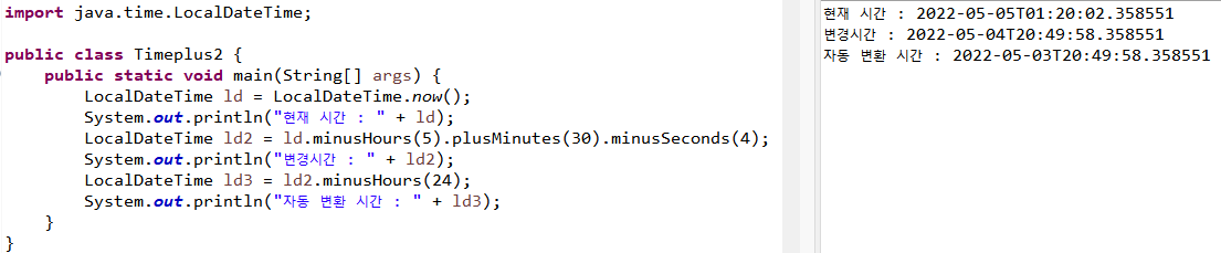 LocalDateTime 클래스 : LocalDate클래스와 LocalTime클래스를 결합한 클래스