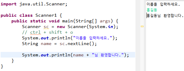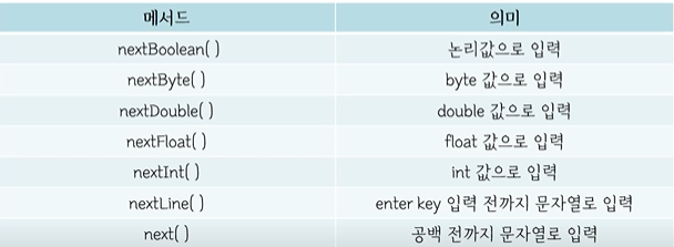 Scanner 변수 = new Scanner(System.in); // 입출력 스트림과의 연결