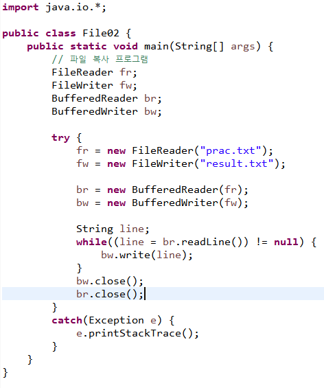 바이트 기반 스트림과 보조스트림을 이용하여 파일을 복사하는 코드 작성하기