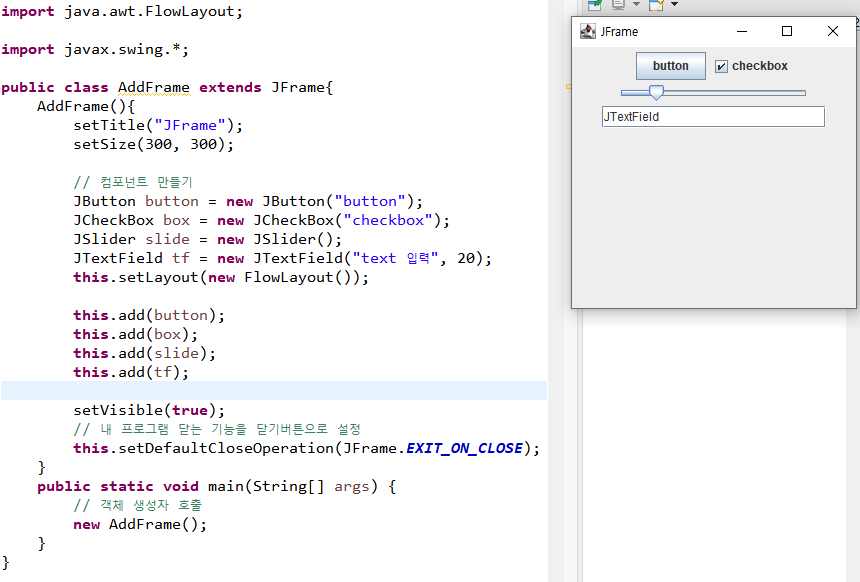 - 생성자에서 컴포넌트 및 프레임의 디자인 구현하기