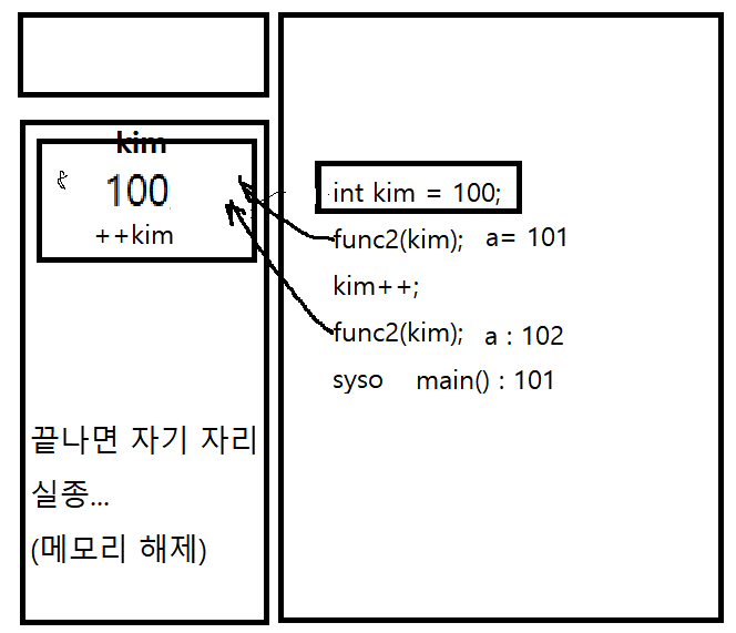 func2(a); // a의 "값"을 보내줌