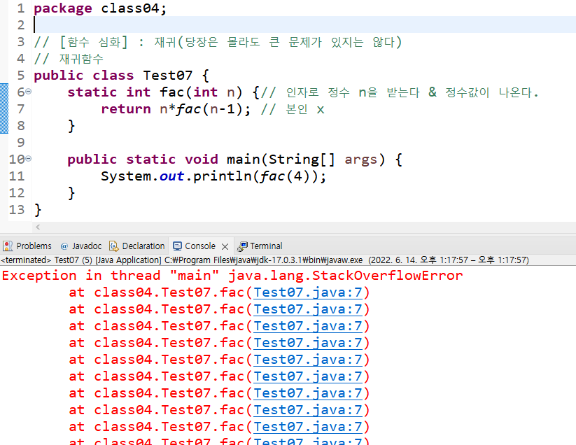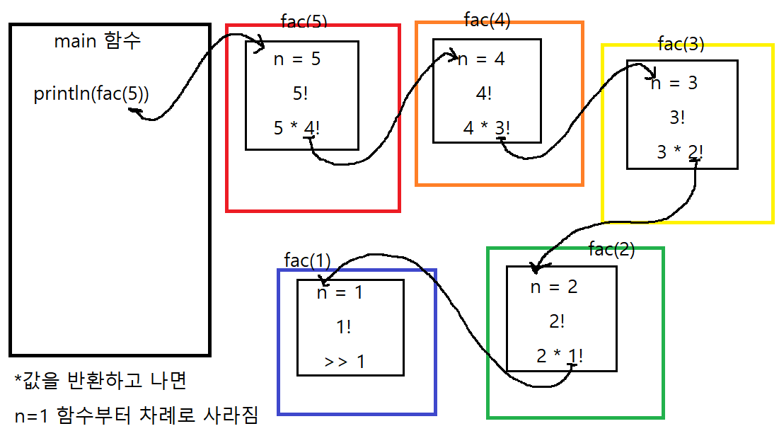 System.out.println(fac(5)); // 5! 출력하기