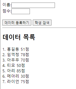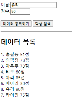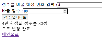 점수를 바꿀 학생 번호 입력 :<input type="text" name="mpk"><br>